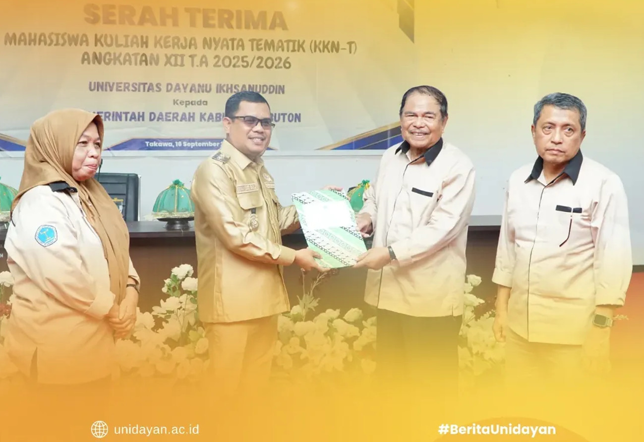 Universitas Dayanu Ikhsanuddin (Unidayan) kembali melaksanakan kegiatan Kuliah Kerja Nyata Tematik (KKN-T) Angkatan XII dengan menyerahkan secara resmi mahasiswa peserta KKN-T kepada Pemerintah Daerah Kabupaten Buton dan Kabupaten Buton Selatan.