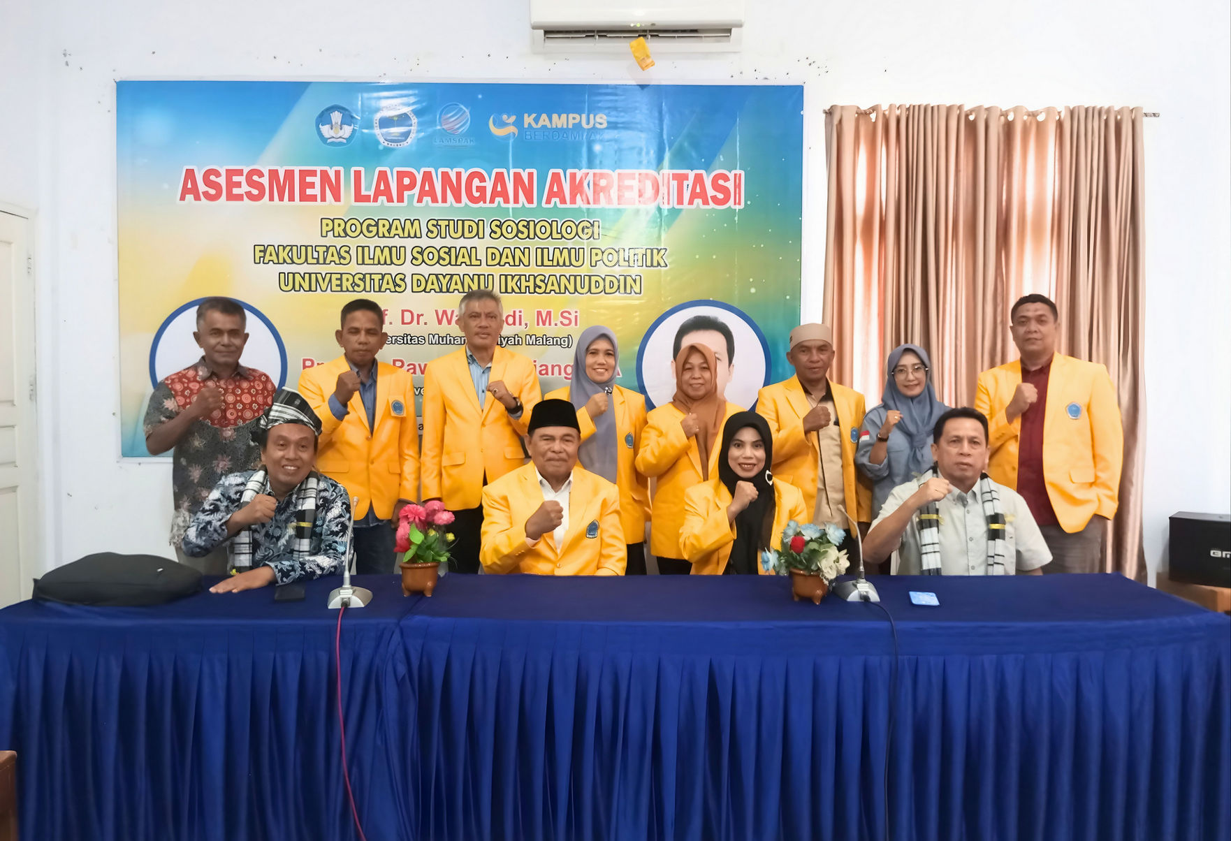 Asesmen lapangan dilakukan oleh dua asesor LAMSPAK, yaitu Prof. Dr. Wahyudi, M.Si. dari Universitas Muhammadiyah Malang dan Prof. Dr. Pawennari Hijjang, M.A. dari Universitas Hasanuddin. Kedatangan kedua asesor tersebut disambut oleh jajaran pimpinan serta sivitas akademika Universitas Dayanu Ikhsanuddin.