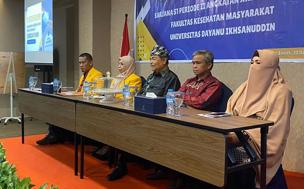 Baubau, 22 Desember 2024 – Fakultas Kesehatan Masyarakat (FKM) Universitas Dayanu Ikhsanuddin (Unidayan) resmi melepas 47 mahasiswa dalam acara yudisium Angkatan XXIV yang dilaksanakan di salah satu hotel di Kota Baubau.