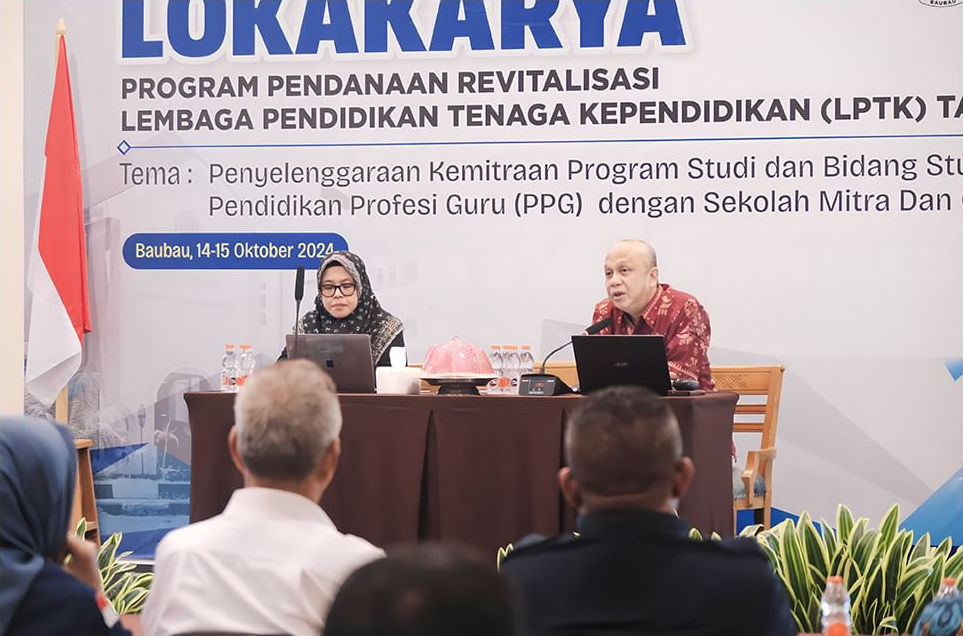 Baubau, 15 Oktober 2024 – Lokakarya Program Pendanaan Revitalisasi Lembaga Pendidikan Tenaga Kependidikan (LPTK) Tahun 2024 dengan tema Penyelenggaraan Kemitraan Program Studi dan Bidang Studi PPG dengan Sekolah Mitra dan Guru Pamong. Acara ini berlangsung selama dua hari, mulai 14 hingga 15 Oktober 2024, bertempat di Nirwana Buton Villa, Kota Baubau.