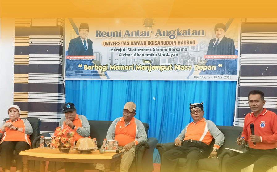 Unidayan – Senin, 12 Mei 2025 | Universitas Dayanu Ikhsanuddin (Unidayan) kembali menyatukan semangat kebersamaan lintas generasi melalui kegiatan Reuni Antar Alumni yang mengusung tema: “Berbagi Memori Menjemput Masa Depan.” Bertempat di Gedung Baruga La Ode Malim, kegiatan ini menjadi forum silaturahmi strategis antara alumni dan sivitas akademika untuk membangun sinergi, memperkuat jejaring, serta mendukung kemajuan institusi secara berkelanjutan.