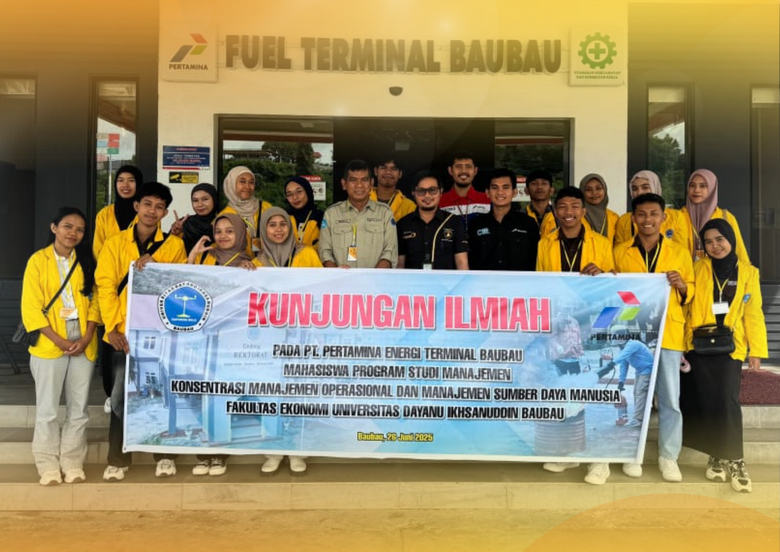 Baubau – Sebanyak 18 mahasiswa Program Studi Manajemen, Fakultas Ekonomi Universitas Dayanu Ikhsanuddin (Unidayan), melakukan kunjungan ilmiah ke PT. Pertamina Energi Terminal Baubau. Kegiatan ini merupakan bagian dari pembelajaran lapangan untuk mendalami penerapan Standard Operating Procedure (SOP) dan Manajemen Keselamatan dan Kesehatan Kerja (K3) di dunia industri, Hari Kamis, 26 Juni 2025.